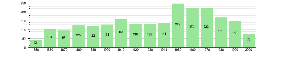 The age distribution of the population (as of 2000) is children and teenagers (0–19 years old) make up 25.6% of the population, while adults (20–64 years old) make up 59% and seniors (over 64 years old) make up 15.4%.[4] As of 2000, there were 31 people who were single and never married in the municipality. There were 36 married individuals, 7 widows or widowers and 4 individuals who are divorced.[8]