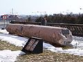 On 1 September 1944, during the Warsaw Uprising, the monument's column was demolished by the Germans, and its bronze statue was badly damaged.[3][4] After the war the statue was repaired, and in 1949 it was set up on a new column, made of granite from the Strzegom mine, a couple of metres from the original site.[2] The original broken pieces of the column can still be seen lying next to the Royal Castle.