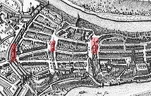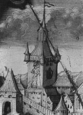 Only after the city's western defences were extended again in 1344–46 up to the now-destroyed Christoffelturm, the Zytglogge was converted to a women's prison, notably housing Pfaffendirnen – "priests' whores", women convicted of sexual relations with clerics.[4] At this time, the Zytglogge also received its first slanted roof.[5]