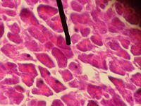 Illustrated section of pancreas of dog. X 250. (Alveolus labeled at center top.) | |