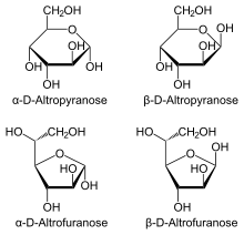 Altrose is a C-3 epimer of mannose. The ring conformation of α-altropyranoside is flexible compared to most other aldohexopyranosides, with idose as exception. In solution different derivatives of altrose have been shown to occupy both 4C1, OS2 and 1C4-conformations.[2]