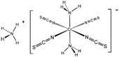 The ammines of chromium(III) and cobalt(III) are of historic significance. Both families of ammines are relatively inert kinetically, which allows the separation of isomers.[7] For example, tetraamminedichlorochromium(III) chloride, [Cr(NH3)4Cl2]Cl, has two forms - the cis isomer is violet, while the trans isomer is green. The trichloride of the hexaammine (hexamminecobalt(III) chloride, [Co(NH3)6]Cl3) exists as only a single isomer. "Reinecke's salt" with the formula NH4[Cr(NCS)4(NH3)2].H2O was first reported in 1863.[8]