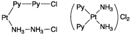 Metal ammine complexes find many uses. Cisplatin (PtCl2(NH3)2) is a coordination compound containing two chloro and two ammine ligands. This is a drug used in treating cancer.[13] Many other amine complexes of the platinum group metals have been evaluated for this application.