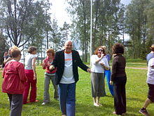 Rapidly growing in popularity, laughter therapy, or humor therapy, focuses on promoting laughter as a therapeutic tool.[26] Usually implemented in a group, laughter therapy uses a variety of gag jokes like red noses and magic tricks to encourage laughter - fake or real. Laughter causes the bodies' muscles to relax which increases blood flow and oxygen intake.[27] Proposed benefits include: Stress management,[28] relaxation, improved mental functions, improved digestion and pain relief. Some suggest that laughter activates similar brain wave frequencies as a meditative state.[29] However, scientific studies of these benefits are limited and have methodological issues.[30]