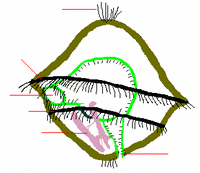Most of an annelid's body consists of segments that are practically identical, having the same sets of internal organs and external chaetae (Greek χαιτη, meaning "hair") and, in some species, appendages. The frontmost and rearmost sections are not regarded as true segments as they do not contain the standard sets of organs and do not develop in the same way as the true segments. The frontmost section, called the prostomium (Greek προ- meaning "in front of" and στομα meaning "mouth") contains the brain and sense organs, while the rearmost, called the pygidium (Greek πυγιδιον, meaning "little tail") or periproct contains the anus, generally on the underside. The first section behind the prostomium, called the peristomium (Greek περι- meaning "around" and στομα meaning "mouth"), is regarded by some zoologists as not a true segment, but in some polychaetes the peristomium has chetae and appendages like those of other segments.[7]