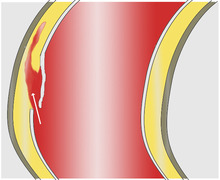 In an aortic dissection, blood penetrates the intima and enters the media layer. The high pressure rips the tissue of the media apart along the laminated plane splitting the inner two-thirds and the outer one-third of the media apart.[18] This can propagate along the length of the aorta for a variable distance forward or backwards. Dissections that propagate towards the iliac bifurcation (with the flow of blood) are called anterograde dissections and those that propagate towards the aortic root (opposite of the flow of blood) are called retrograde dissections. The initial tear is usually within 100 mm of the aortic valve, so a retrograde dissection can easily compromise the pericardium leading to a hemopericardium. Anterograde dissections may propagate all the way to the iliac bifurcation of the aorta, rupture the aortic wall, or recanalize into the intravascular lumen leading to a double-barrel aorta. The double-barrel aorta relieves the pressure of blood flow and reduces the risk of rupture. Rupture leads to hemorrhaging into a body cavity, and prognosis depends on the area of rupture. Retroperitoneal and pericardial ruptures are both possible.