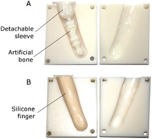 The production of a prosthetic socket begins with capturing the geometry of the residual limb, this process is called shape capture. The goal of this process is to create an accurate representation of the residual limb, which is critical to achieve good socket fit.[45] The custom socket is created by taking a plaster cast of the residual limb or, more commonly today, of the liner worn over their residual limb, and then making a mold from the plaster cast. The commonly used compound is called Plaster of Paris.[46] In recent years, various digital shape capture systems have been developed which can be input directly to a computer allowing for a more sophisticated design. In general, the shape capturing process begins with the digital acquisition of three-dimensional (3D) geometric data from the amputee’s residual limb. Data are acquired with either a probe, laser scanner, structured light scanner, or a photographic-based 3D scanning system.[47]