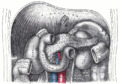 ![]() Drawing of colon seen from front (ascending colon coloured blue) | |