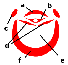 The head is free and mobile and dichoptic in both sexes and has three ocelli arranged in a characteristic depression formed by the elevation of the compound eyes. This feature is clearly visible in the front view and is a morphological peculiarity of Asilidae. The occipital region has one or more rows of bristles aligned behind the posterior margin of the eye. The facial region has a convex profile with a characteristic dense bundle of bristles, called a "mystax". The mystax helps protect the head and face when the fly encounters prey bent on defense. Other bristles are arranged on the ocellar tubercle.
