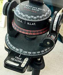 An astrocompass is a navigational tool for determining the direction of true north through the positions of various astronomical bodies.