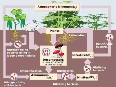 The relative abundance of 14N and 15N is practically constant in the atmosphere but can vary elsewhere, due to natural isotopic fractionation from biological redox reactions and the evaporation of natural ammonia or nitric acid.[28] Biologically mediated reactions (e.g., assimilation, nitrification, and denitrification) strongly control nitrogen dynamics in the soil. These reactions typically result in 15N enrichment of the substrate and depletion of the product.[29]