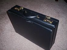 A briefcase is a narrow hard-sided box-shaped bag or case used mainly for carrying papers and equipped with a handle. Lawyers commonly use briefcases to carry briefs to present to a court, hence the name. Businesspeople and other white collar professionals also use briefcases to carry papers, and since the 1980s, electronic devices such as laptop computers and tablet computers. Some briefcases have only a main internal space, while others may have subsections, accordion sections, small pockets, or dividers. Briefcases may be made from leather, vinyl, durable fabric, thin metal (such as aluminium), or plastic. Leather, vinyl, or fabric briefcases may have externally-accessible pockets or sleeves in addition to the main storage space. Some briefcases made of fabric may have a shoulder strap. Briefcases typically have a lock to protect the contents. Nowadays, briefcases may have padded internal pouches to protect laptop computers.