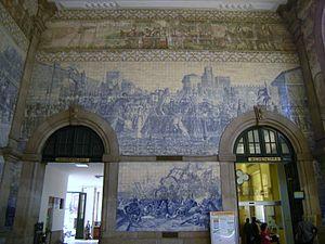 Azulejo panel in the São Bento railway station in Porto, Portugal.