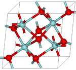 The coordination number for ZrO2 has been found to be 7. The mineral has two types of separations. The first being the seven shortest Zr-O, ranging from 2.04 to 2.26 Å, and the second Zr-O separation is 3.77 Å. Because of this, the coordination of baddeleyite was determined to be sevenfold. Baddeleyite's structure is a combination of tetrahedrally coordinated oxide ions parallel to (100) with triangular coordinated oxide ions. This explains baddeleyite's tendency to twin along the (100) planes. It has been observed that baddeleyite without twinning is extremely rare.[8]