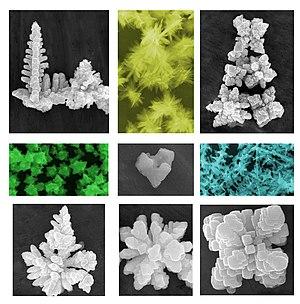 Much effort has been spent studying the relationship between particle morphology and its properties. Barium titanate is one of the few ceramic compounds known to exhibit abnormal grain growth, in which large faceted grains grow in a matrix of finer grains, with profound implications on densification and physical properties.[7] Fully dense nanocrystalline barium titanate has 40% higher permittivity than the same material prepared in classic ways.[8] The addition of inclusions of barium titanate to tin has been shown to produce a bulk material with a higher viscoelastic stiffness than that of diamonds. Barium titanate goes through two phase transitions that change the crystal shape and volume. This phase change leads to composites where the barium titanates have a negative bulk modulus (Young's modulus), meaning that when a force acts on the inclusions, there is displacement in the opposite direction, further stiffening the composite.[9]