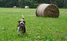 Alongside the Bloodhound and Basset Hound, the beagle has one of the best developed senses of smell of any dog.[31] In the 1950s, John Paul Scott and John Fuller began a 13-year study of canine behavior. As part of this research, they tested the scenting abilities of various breeds by putting a mouse in a one-acre field and timing how long it took the dogs to find it. The beagles found it in less than a minute, while Fox Terriers took 15 minutes and Scottish Terriers failed to find it at all. Beagles are better at ground-scenting (following a trail on the ground) than they are at air-scenting, and for this reason they have been excluded from most mountain rescue teams in favor of collies, which use sight in addition to air-scenting and are more biddable.[31] The long ears and large lips of the beagle probably assist in trapping the scents close to the nose.[32]