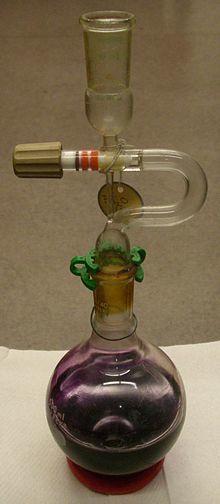 Generally sodium is used as the alkali metal. Although inferior in terms of safety and effectiveness relative to molecular sieves,[13] this ketyl is used in the purification of organic solvents, particularly ethers, because it reacts with water and oxygen to give non-volatile products.[14][15] The ketyl is soluble in the organic solvent being dried, so it accelerates the reaction of the sodium with water and oxygen. In comparison, sodium is insoluble, and its heterogeneous reaction is much slower. When excess alkali metal is present a second reduction may occur, resulting in a color transformation from deep blue to purple:[12]