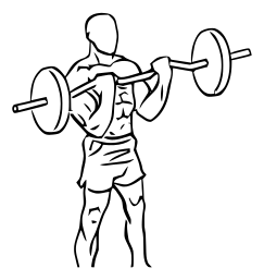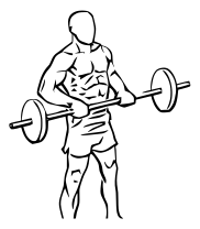 - Barbell reverse curl: Hold the barbell in a standing position with a shoulder-width reverse grip. Tuck the elbows to the side of the torso and keep the scapula pressed, so the shoulders remain stable. Drive the barbell towards the shoulder until the biceps are fully contracted. Then return the barbell to starting position for another repetition.[25]