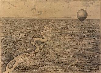 Bird's-eye view of operations during the Paraguayan War from James Allen`s observation balloon, 1868