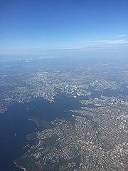 A bird's-eye view is an elevated view of an object from above, with a perspective as though the observer were a bird, often used in the making of blueprints, floor plans, and maps.[1]