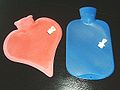 A hot water bottle is a bottle filled with hot water used to provide warmth. It can be made from various materials, most commonly rubber, but has historically been made from harder materials such as metal, glass, earthenware, or wood.