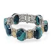 Bracelets made from connecting or linking various or similar components or jewelry findings. Link bracelets can be made of a variety of materials including metals and gemstones.