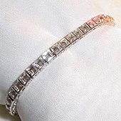 During the 1978 U.S. Open, Chris Evert's diamond line bracelet fell off onto the court.[6] She said about this, "I dropped my tennis bracelet", and since then diamond line bracelets have been called tennis bracelets.[6] Oddly, the majority of the articles on the Internet about the incident incorrectly claim that it occurred in 1987.[7] Tennis bracelets are made up of many identical settings, each of which incorporates a hinge. The links are usually riveted or soldered from the sides of the bracelet allowing it to flex freely around the wrist with minimal movement left-to-right. A typical tennis bracelet will feature round diamonds set in 4 claw settings. Tennis bracelets can be adjusted to fit the wearer by removing links, this must be done by a jeweller.[8]