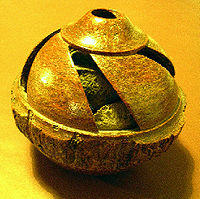 The capsule contains a small hole at one end, which enables large rodents like the agouti to gnaw it open.[14] They then eat some of the seeds inside while burying others for later use; some of these are able to germinate into new Brazil nut trees.[14] Most of the seeds are "planted" by the agoutis in caches during wet season,[14] and the young saplings may have to wait years, in a state of dormancy, for a tree to fall and sunlight to reach it, when it starts growing again. Capuchin monkeys have been reported to open Brazil nuts using a stone as an anvil.
