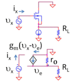 Using the small-signal circuit in Figure 5, the impedance seen looking into the circuit is no longer RL but instead is infinite (at low frequencies) because the MOSFET draws no current.