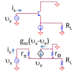 Using the small-signal circuit in Figure 4, the impedance seen looking into the circuit is