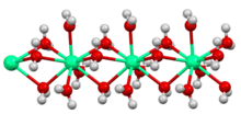 Calcium chloride occurs as the rare evaporite minerals sinjarite (dihydrate) and antarcticite (hexahydrate).[28][29][30] Another natural hydrate known is ghiaraite - a tetrahydrate.[31][32] The related minerals chlorocalcite (potassium calcium chloride, KCaCl3) and tachyhydrite (calcium magnesium chloride, CaMg2Cl6·12H2O) are also very rare.[33][34][35] So is true for rorisite, CaClF (calcium chloride fluoride).[36][37]