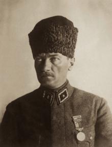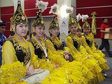 Calpack, kalpak, or qalpaq (from Turkish: kalpak [kaɫˈpak];[1] Kazakh: қалпақ, Kyrgyz: калпак, both [qɑlˈpɑq]; Bulgarian: калпак; Greek: καλπάκι (kalpaki);[2] Polish: kołpak; Ukrainian: ковпак, kovpak) is a high-crowned cap (usually made of felt or sheepskin) worn by men in Turkey, Ukraine, the Balkans and throughout Central Asia and the Caucasus.