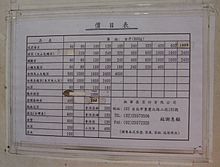 The catty is traditionally equivalent to around 1 1&fras1;3 pound avoirdupois, formalised as 604.78982 grams in Hong Kong,[1] 604.79 grams in Malaysia[2] and 604.8 grams in Singapore.[3] In some countries, the weight has been rounded to 600 grams (Taiwan,[4] Japan, Korea[5] and Thailand). In mainland China, the catty (more commonly translated as jin within China) has been rounded to 500 grams and is referred to as the market catty (市斤 shìjīn) in order to distinguish it from the "metric catty" (公斤 gōngjīn), or kilogram, and it is subdivided into 10 taels rather than the usual 16.
