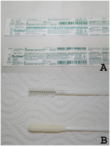 In this method, cells are collected after they have been either spontaneously shed by the body ("spontaneous exfoliation"), or manually scraped/brushed off of a surface in the body ("mechanical exfoliation"). An example of spontaneous exfoliation is when cells of the pleural cavity or peritoneal cavity are shed into the pleural or peritoneal fluid. This fluid can be collected via various methods for examination. Examples of mechanical exfoliation include Pap smears, where cells are scraped from the cervix with a cervical spatula, or bronchial brushings, where a bronchoscope is inserted into the trachea and used to evaluate a visible lesion by brushing cells from its surface and subjecting them to cytopathologic analysis. After sampling, two main techniques can be used: conventional cytology and liquid-based cytology. With the latter, the sample is placed in a liquid that is then processed for further investigation.