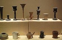 The Odai Yamamoto I site, belonging to the Jōmon period, currently has the oldest pottery in Japan. Excavations in 1998 uncovered earthenware fragments which have been dated as early as 14,500 BC.[46] The term "Jōmon" means "cord-marked" in Japanese. This refers to the markings made on the vessels and figures using sticks with cords during their production. Recent research has elucidated how Jōmon pottery was used by its creators.[47]