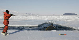 An alternative method of studying cetaceans is through examination of dead carcasses that wash up on the shore. If properly collected and stored, these carcasses can provide important information that is difficult to obtain in field studies.[2]