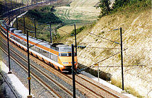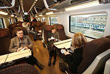 While intercity passenger rail travel declined in America, ridership continued to increase in other parts of the world. With the increase came an increased use of newer technology on existing and new equipment. The Spanish company Talgo began experimenting in the 1940s with technology that would enable the axles to steer into a curve, allowing the train to move around the curve at a higher speed. The steering axles evolved into mechanisms that would also tilt the passenger car as it entered a curve to counter the centrifugal force experienced by the train, further increasing speeds on existing track.[3] Today, Talgo trains are used in many places in Europe and they have also found a home in North America on some short and medium distance routes such as Eugene, Oregon, to Vancouver, British Columbia.
