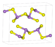 In contrast to classical metal dichalcogenides, iron pyrite, a common mineral, is usually described as consisting of Fe2+ and the persulfido anion S22−. The sulfur atoms within the disulfido dianion are bound together via a short S-S bond.[2] "Late" transition metal disulfides (Mn, Fe, Co, Ni) almost always adopt the pyrite or the related marcasite motif, in contrast to early metals (V, Ti, Mo, W) which adopt 4+ oxidation state with two chalcogenide dianions.