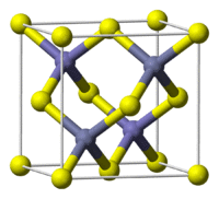 Metal monochalcogenides have the formula ME, where M = a transition metal and E = S, Se, Te. They typically crystallize in one of two motifs, named after the corresponding forms of zinc sulfide. In the zinc blende structure, the sulfide atoms pack in a cubic symmetry and the Zn2+ ions occupy half of the tetrahedral holes. The result is a diamondoid framework. The main alternative structure for the monochalcogenides is the wurtzite structure wherein the atom connectivities are similar (tetrahedral), but the crystal symmetry is hexagonal. A third motif for metal monochalcogenide is the nickel arsenide lattice, where the metal and chalcogenide each have octahedral and trigonal prismatic coordination, respectively. This motif is commonly subject to nonstoichiometry.[6]