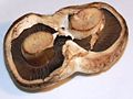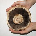 Ventral view of a portobello cultivar with a bisected stipe
