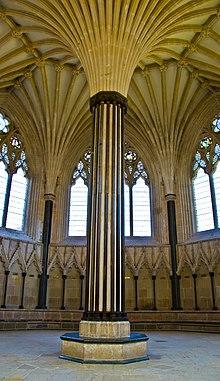 - Wells Cathedral palm tree like central pillar carrying 32 lierne ribs that form the inner part of the vault