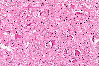 Severe neuronal chromatolysis has been detected in the brainstems of adult cattle with the neurodegenerative condition known as idiopathic brainstem neuronal chromatolysis (IBNC). The symptoms of IBNC in cattle are clinically similar to those characterized by bovine spongiform encephalopathy, otherwise known as mad-cow disease. These symptoms included tremor, lack of muscle movement coordination, anxiety and weight loss.[17] At the cellular level, IBNC is marked by the degeneration of neurons and axons within the brainstem and cranial nerves. The disease also has a significant correlation with abnormal labeling for prion protein (PrP) in the brain. IBNC has been characterized by severe neuronal, axonal, and myelin degradation, accompanied by non-supportive inflammation and changes in spongiform of various regions of grey matter. A significant loss of neurons due to hippocampal degeneration has also been observed. The degenerate chromatolysis neurons seldom showed intracytoplasmic labeling for PrP.[18]