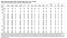 - ^ Dietary Reference Intakes for Calcium, Phosphorus, Magnesium, Vitamin D, and Fluoride (1997); Dietary Reference Intakes for Thiamin, Riboflavin, Niacin, Vitamin B6, Folate, Vitamin B12, Pantothenic Acid, Biotin, and Choline (1998); Dietary Reference Intakes for Vitamin C, Vitamine E, Selenium, and Carotenoids (2000); Dietary Reference Intakes for Vitamin A, Vitamin K, Arsenic, Boron, Chromium, Copper, Iodine, Iron, Manganese, Molybdenum, Nickel, Silicon, Vanadium, and Zinc (2001); and Dietary Reference Intakes for Calcium and Vitamin D (2011).