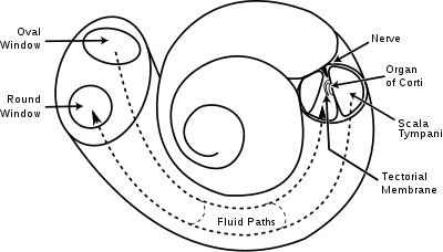 - ^ Manoussaki D, Chadwick RS, Ketten DR, Arruda J, Dimitriadis EK, O'Malley JT (2008). "The influence of cochlear shape on low-frequency hearing". Proc Natl Acad Sci U S A. 105 (16): 6162–6166. Bibcode:2008PNAS..105.6162M. doi:10.1073/pnas.0710037105. PMC 2299218. PMID 18413615.
