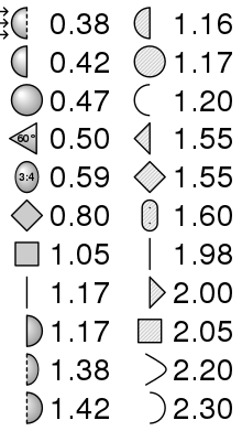| 0.9-1.7 | Trapeze with triangular basis (45°) |
