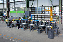 Forge rolling is a longitudinal rolling process to reduce the cross-sectional area of heated bars or billets by leading them between two contrary rotating roll segments. The process is mainly used to provide optimized material distribution for subsequent die forging processes. Owing to this a better material utilization, lower process forces and better surface quality of parts can be achieved in die forging processes.[23]