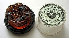• Players of bowed string instruments rub cakes or blocks of rosin on their bow hair so it can grip the strings and make them speak, or vibrate clearly.[3] Extra substances such as beeswax, gold, silver, tin, or meteoric iron[4] are sometimes added to the rosin to modify its stiction/friction properties and the tone it produces.[5] Powdered rosin can be applied to new hair, for example with a felt pad or cloth, to reduce the time taken in getting sufficient rosin onto the hair. Rosin is often reapplied immediately before playing the instrument. Lighter rosin is generally preferred for violins and violas, and in high-humidity climates, while darker rosins are preferred for cellos, and for players in cool, dry areas.[6] There are also specific, distinguishing types for basses—for more see Bow (music).
