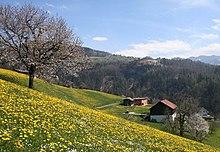 The dandelion is a common colonizer of disturbed habitats, both from wind blown seeds and seed germination from the seed bank.[37] The seeds remain viable in the seed bank for many years, with one study showing germination after nine years. This species is a somewhat prolific seed producer, with 54 to 172 seeds produced per head, and a single plant can produce more than 5,000 seeds a year. It is estimated that more than 97,000,000 seeds/hectare could be produced yearly by a dense stand of dandelions.[38] When released, the seeds can be spread by the wind up to several hundred meters from their source. The seeds are also a common contaminant in crop and forage seeds. The plants are adaptable to most soils and the seeds are not dependent on cold temperatures before they will germinate but they need to be within the top 2.5 cm (1 in) of soil.[25]