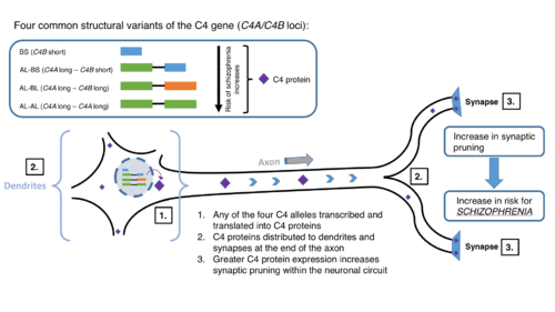 - ^ Sekar, Aswin; Bialas, Allison R.; de Rivera, Heather; Davis, Avery; Hammond, Timothy R.; Kamitaki, Nolan; Tooley, Katherine; Presumey, Jessy; Baum, Matthew (11 February 2016). "Schizophrenia risk from complex variation of complement component 4". Nature. 530 (7589): 177–183. Bibcode:2016Natur.530..177.. doi:10.1038/nature16549. ISSN 0028-0836. PMC 4752392. PMID 26814963.