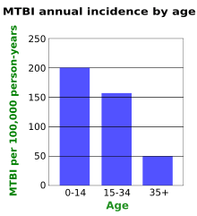 - ^ Kraus JF, Chu LD (2005). "Epidemiology". In Silver JM, McAllister TW, Yudofsky SC (eds.). Textbook of Traumatic Brain Injury. American Psychiatric Pub., Inc. p. 23. ISBN 978-1-58562-105-7.